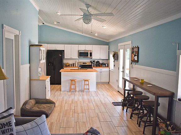 Very nice home built in 2018 offers open concept living/dining/kitchen, and a spacious bedroom and bathroom. Low-maintenance, neutral tile flooring throughout, painted knotty pine ceilings and rustic chic fixtures add to the charm of this cozy cottage-style home. Full-length front porch for enjoying the great outdoors. Nineteen acres with wooded areas is excellent for hunting. PSO Electric, new well and system. An added bonus is the spacious, spray foam insulated workshop ideally located just yards away.