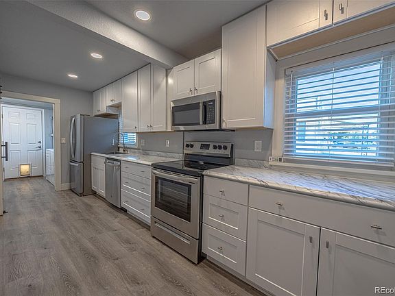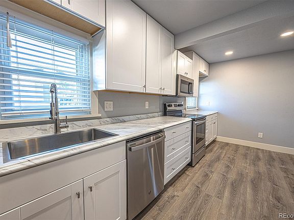 This charmingly remodeled 2 bed, 1 bath home offers cozy living with modern upgrades. The inviting living space features new luxury vinyl plank flooring, upgraded insulation, fully updated electrical system and abundant light.  The kitchen is equipped with sleek laminate countertops with plenty of space for meal prep, stainless steel appliances, large farm sink, pull down faucet, and custom cabinetry.  Both bedrooms, provide comfortable living with closet space.  The main bedroom is perfect for a queen size bed and the secondary bedroom sized for an office, a nursery, or child's room. The updated bathroom includes a stylish vanity, new toilet, tub shower and barn door.  Recent upgrades include everything inside new AC, heat pump and new water heater. Outside, the private yard is perfect for relaxing and includes a small patio for intimate gatherings. In-ground sprinkler system makes lawn maintenance an breeze and seller is including a lawn mower with the sale.  This delightful home is a perfect blend of comfort and contemporary style and comes with all appliances including washer/dryer.  This is a perfect way to have a detached residence, no HOA and not share adjoining walls.  There is a beautiful park right across the street as well as an elementary school close by.  There is a large side lot for multi-use, as well as off street parking. Highway 85 is just minutes away for easy access to other highways and the Prarie center is just a 10-minute drive.