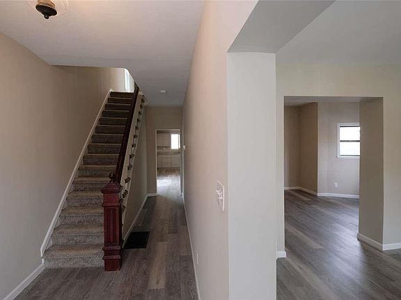Come see this beautiful fully rehabbed 4 bedroom/2 bathroom house with detached 2 car garage. One bedroom has another, large room attached that could make a perfect bathroom/walk-in closet for a primary bedroom suite. New HVAC system gives you central air/heat. Property has been fully rewired. Double walls with insulation make for a well-built, quiet and cozy family house. Seller has never lived in home.