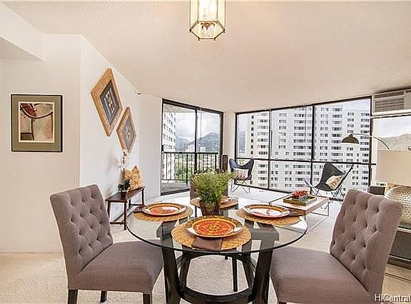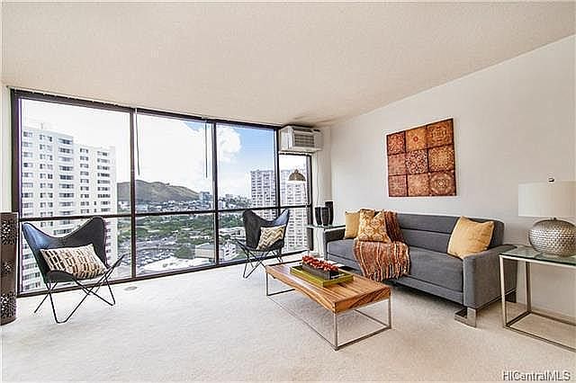 You will love the location and the updates and changes that have been done! Cooler side of building with beautiful sunrises! City and Punchbowl views from the lanai. Next to Chinatown and walking distance to Wal-Mart, Safeway, Longs, Post Office, tons of restaurants and just a few miles from Costco, Petsmart, Ala Moana Mall, Ala Moana State Park and Waikiki Beach. Bedroom has brand new air conditioner and housing unit, brand new washer and dryer (replaced 220 outlet, 110 outlet, and replaced shutoff valve), living room air conditioner has just been serviced and the housing unit replaced, brand new lifetime waterproof flooring in hallway and bathroom, and hallway and bathroom have been painted. Sink in bathroom has been stained, handles replaced, walls painted and mirror trimmed out. Stone backsplash has also been added in the kitchen and cabinets are soft close. Maintenance fee includes everything except electric. It also includes cable with HBO and Showtime. You can also walk to Queens Medical Center. For taxes and insurance I pay $125 per month for both, not the $260 Zillow calculates. (Livingroom, dining room, and bedroom have been staged.)