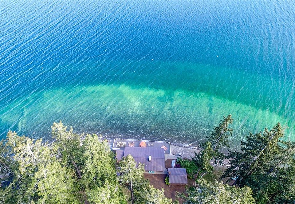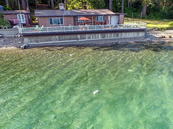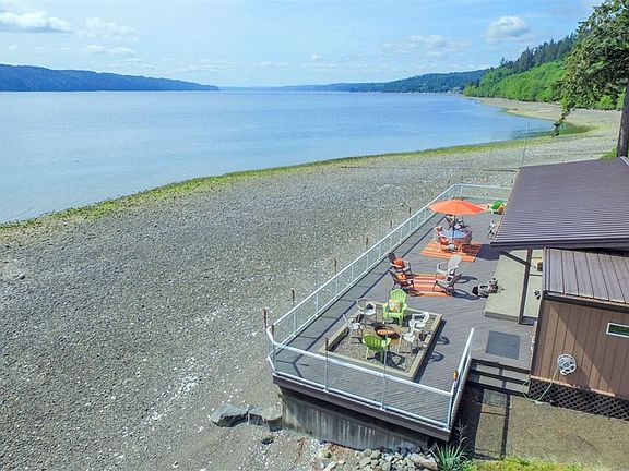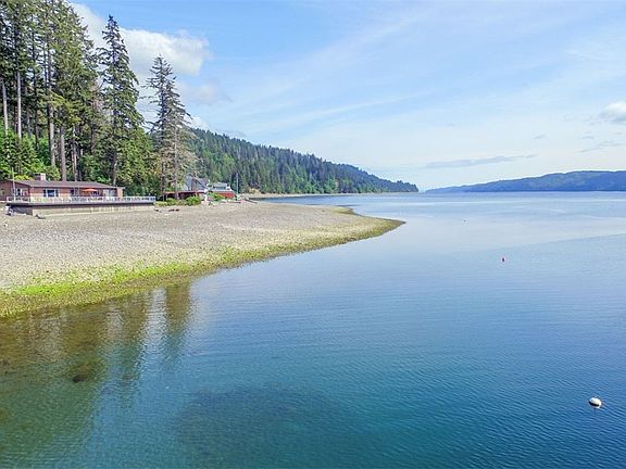 Perched on the point with *stunning* 250 degree views! 1000+ SF deck fronts entire home! $65k new bulkhead in 2000. Neighbors sit behind you on shy half acre. 200 feet of tidelands are yours; clams & oysters abound! Firepit, outdoor kitchen, fountain, all glass rail. In winter, cozy up to impressive brick FP. Versatile floor plan fantastic for entertaining. Updated windows, kitchen, roof. Detached, fully appointed 300 SF guest house: 3/4 bath, woodstove, french doors. Just 7 mins N of Hoodsport.