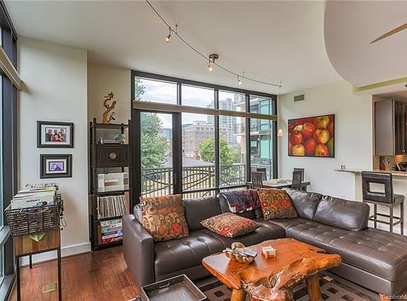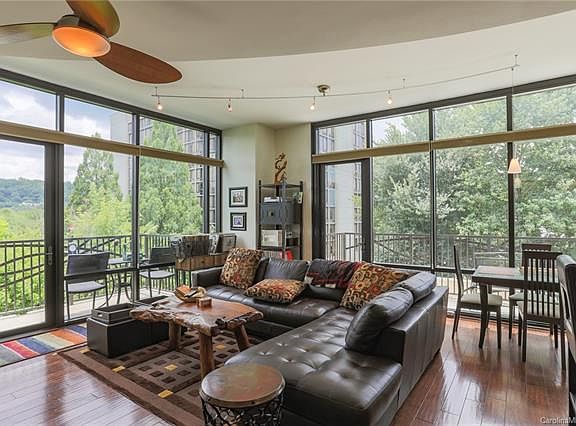 Beautiful corner condo in one of Asheville's most sought after buildings, 60 N. Market Street Condominiums. Featuring not one but TWO balconies off of the living room, this condo has floor-to-ceiling windows with custom window treatments, large walk-in closet, open living room/kitchen concept, gas range for the cooking enthusiasts and a dedicated parking space in the building's secured parking garage. Residents enjoy a newly refinished common area club room with fireplace and kitchen, outdoor patio with outdoor fireplace, common area grill and fitness room. Simply walk out your door to all that Downtown Asheville has to offer. Owner would consider selling furnished.