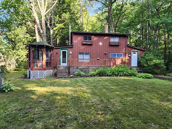Looking for waterfront property in a quiet setting (next to last lot on a dead-end road)? This 3 BR/1 BA home sits on 5 level, open/wooded & private acres on Crystal/Beals Pond, a small yet mighty body of water when it comes to fishing. The depths of this pond accommodates an array of species for all fishing seasons. The main floor features an eat-in kitchen, cozy living room with a wood burning fireplace, family room with a wood stove and a full bath. The primary and two additional bedrooms are located on the second floor along with an office/bonus room. Views of the pond can be enjoyed from several rooms throughout the home as well as from the deck or screened-in gazebo. The paved driveway makes snow cleanup a breeze and the 2 car garage offers storage for vehicles and other recreational toys. Make this property your next dream home or weekend get-away!