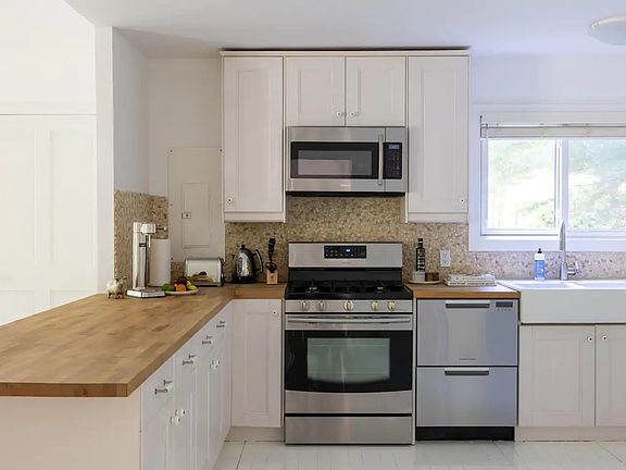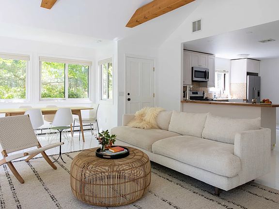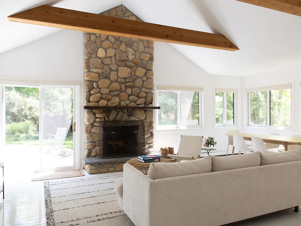 Rental Registration #: 22 - 1.058 Relax and unwind at this unique and tranquil getaway. Charming cottage with spacious lawn surrounded by lush vegetation and protected land. 5-minute walk to a secluded and serene Northwest Harbor beach.The open kitchen, dining and living area under cathedral ceilings anchors a serene space with a stone fireplace. Chic and modern with brand-new, high-end bathrooms. The primary bedroom with a private bath, two guest bedrooms and an additional full bathroom. Doors lead to the deck well suited for outdoor dining . An approximately 10-minute drive from both East Hampton and Sag Harbor restaurants and stores. Perfect rental for those who want a mix of quiet time and quick access to everything else.