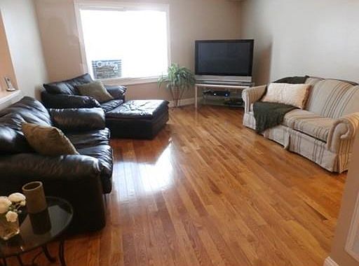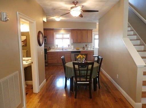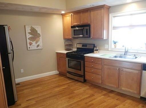 Impeccable Town house, Feels like your in your own single family home when your in this beautiful 4 room 2 bedroom extra large, corner unit with gleaming hardwood floors, open concept living, large eat-in kitchen with stainless steel appliances, 1 1/2 baths and laundry in unit, central air and gas Heat! It also has a wonderful full basement for ample storage or work area. Handy to everything! Ready to move in. All you need are your personal belongings.