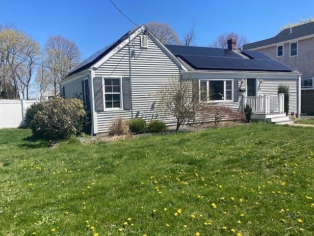 One Level living with open floor plan! This home offers a maple kitchen with Corian counter tops, dining room, living room with sliders to a large deck, 2/3 bedrooms (originally 3 beds) & a full bath. 1 car garage and above ground pool too! Situated on a 1/2 acre lot with water views. Located on a dead-end street with the North St. Landing at the waters edge just steps away. The solar panels are owned by the seller not leased.