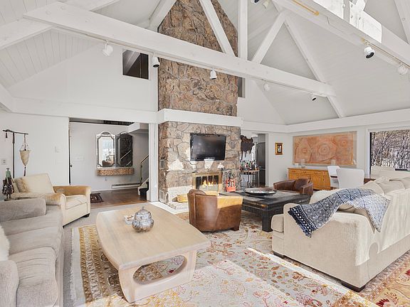 This light and bright East Aspen home is a great family retreat. Its large open concept living room and dining room has a soaring beamed ceiling and is surrounded by three sides of tall sliders and windows. From the living room, go outside onto the wrap-around deck, furnished with lounge chairs, an outdoor dining table, a Blackstone grill + traditional grill. The eat-in kitchen, with new appliances, is just steps away. Five bedrooms and bathrooms provide plenty of room for your family and guests. The upper-level extra-large ensuite bedroom is connected to a den with a large flatscreen TV, which makes this area a great kid hang-out. This Knollwood home is on Northway Drive, which has virtually no traffic and is just one mile from downtown Aspen. Call Dial-A-Ride to schedule a pickup day and night or ride your bike on the bike path that goes directly to town. This great spacious home is the perfect retreat for your family or group!