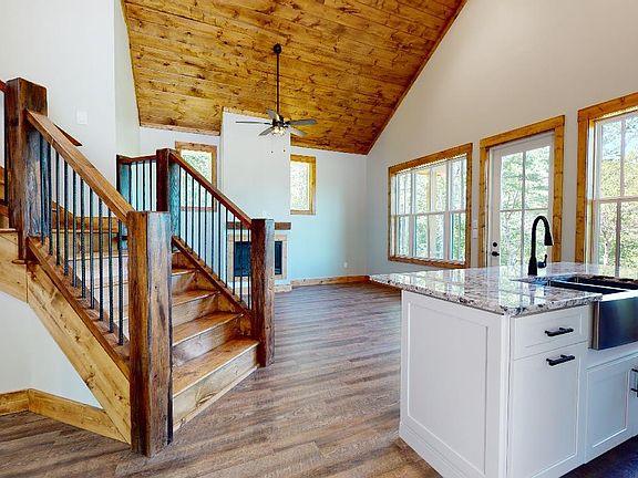 BRAND NEW PRIVATE CABIN WITH MULTI-RIDGE MOUNTAIN VIEWS! Located on 1.38 acres of private UNRESTRICTED property, this 3 bedroom(2 on the main & 1 upper level), 2 bathroom quality built cabin offers spectacular views from the front porch & walls of windows in the great room, an open floor plan, T&G cathedral ceiling, laundry & master bedroom on the main level, glass & tile walk-in showers in both bathrooms + a soaking tub in the master bedroom, beautiful blend of wood & drywall, fireplace, kitchen with stainless appliances & thick granite counters, PLUS it is located less than 2 miles to Hayesville center and public Lake Chatuge access with boat launch and picnic tables less than 1 mile away via Oak Forest Rd. Adjacent lot also available.