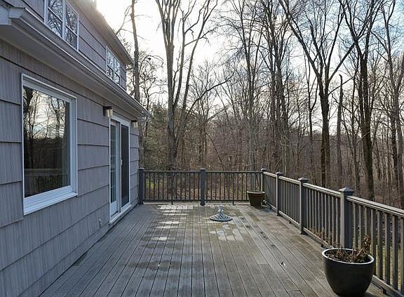Modern clean lines complement the traditional center hall floorplan and flow in this bright, sunny renovated colonial minutes from town & train. Well designed renovation throughout using present day popular finishes & materials-gleaming wood floors, stainless steel appliances, granite and glass, maple cabinetry, contemporary hardware. Light filled spaces throughout with family room completely open to the eat-in kitchen. The expansive level backyard opens to protected conservancy land beyond with a walking path directly to Chappaqua Swim & Tennis Club. The cheerful walk-out lower level with 38' ft finished windowed playroom & full bath allows for a flexible floorplan. Updates include new deck & roof. Wood floors throughout, septic in front, fireplace & skylights, natural gas, mud room leads to main level garage & flat driveway. Impeccably maintained & stylishly updated, this 4 bedroom 3.1 bath home is in move-in condition less than 5 minutes from train & village center.