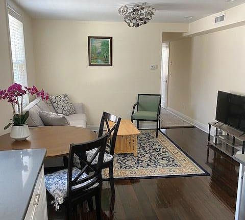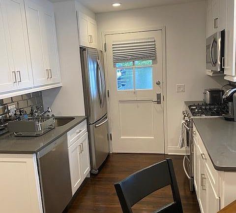 This completely renovated, sunny two bedroom first floor apartment is a short distance to Greenwich Avenue and the train. It features a contemporary open floor plan and gleaming hardwood floors throughout the unit. The galley kitchen is modern with stainless steel appliances, white cabinets, solid surface countertops and a back door to a small deck and the parking area. The two bedrooms provide generous closets. Laundry and a large storage unit is in the lower level, One spot in the parking area per unit.