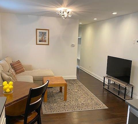 This completely renovated, sunny 2 bedroom, 3rd floor apartment is a short walk to Greenwich Ave and the train. It features a contemporary open floor plan and gleaming hardwood floors in the living area and kitchen. The kitchen is modern with stainless steel appliances, white cabinets, solid surface countertops and a back door to a small deck and the parking area. The two bedrooms are carpeted in neutral gray and provide generous closets Laundry and a large, secure storage room are in the lower level. On spot in the parking area.