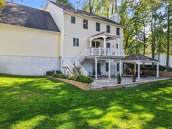 Pride of ownership and craftsmanship shine throughout this 3 level, 4 bedroom, center hall colonial. The kitchen is adorned with granite counters and oak cabinetry with access to an oversized two car attached garage. A dining area opens up to a large covered deck. A beautiful stone fireplace is the focal point of the spacious family room which is adjacent to the formal living room. The dining room is crowned with cove lighting accents within the tray ceiling. Crown molding finishes throughout the 9.5 foot ceilings as well as hardwood flooring with inlay detail. Upstairs you will find 3 bedrooms, a full bathroom, and a master suite complete with a large walk in closet. The master bath with a double vanity, jacuzzi tub and large shower. Large finished basement with a deluxe bathroom, laundry area, and additional space. Porcelain tile flooring throughout. Sliding glass doors open to a covered patio and a beautiful pavilion exuding a Zen like atmosphere. This gem of a home will not last!