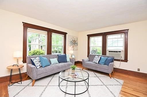 A fabulous opportunity to own in Arlington. Bring your finishing touches to this charming 6 room 3 bedroom 1 bath Colonial in the coveted Stratton School district. The first floor features a sunny living room, formal dining room with built in china cabinet, chair rails and coffered ceiling. The eat in kitchen is spacious allowing for several different configurations. The second floor includes 3 bedrooms with ample closet space and a fully tiled bath. There is a walk up to the attic space which allows for future expansion potential. This home is vinyl sided has replacement windows and newly refinished hardwood floors throughout. There is a gas line available in the home should you wish to change the older oil heating system to natural gas. The basement walks out to a roomy yard for gatherings and cookouts. There is plenty of off street parking and a one car garage. Don't miss this one!