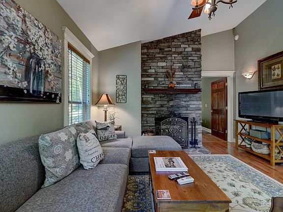 Like-new furnished 3 BR, 2 BA Chalet only 2 miles from downtown Highlands! New heatpump installed 2017, hardwood & tile floors, vaulted wood ceilings, lots of tall windows/natural light, private screen porch, and metal roof. Fireplace in family room & master bedroom. Nice, low maintenance landscaping with sitting areas. Private driveway with additional parking and detached storage bldg. Seasonal mountain views of Blue Valley.