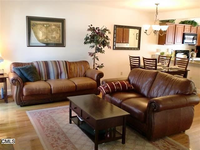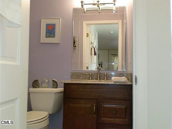 Beautifully renovated end unit. Fresh paint, granite eat-in kitchen, main level hardwood floors, living room with fireplace and sliders to deck, new baths, new carpet upstairs. Spacious master bedroom and full bath, attic storage, laundry room on lower level opens to 2-car garage. Lots of storage. Minutes from major highways, great NY commute. Fantastic location.