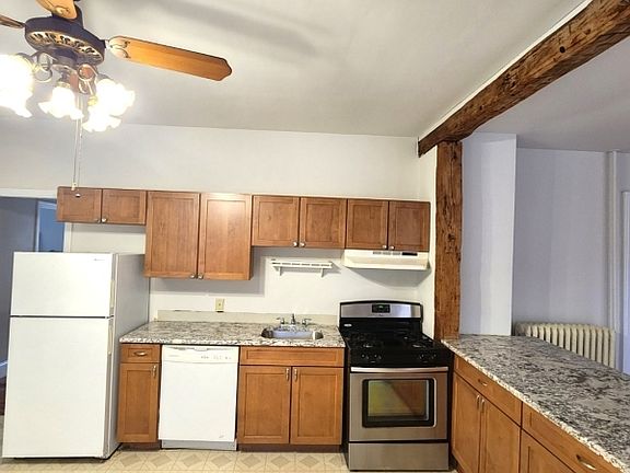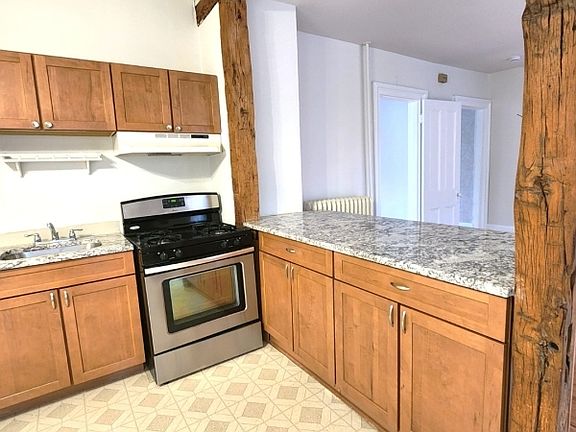 Quaint 2 bedroom first floor apartment in Flemington with one bath and a den office.. Just repainted! The large main bedroom has a walk-in closet. Hardwood floors, high ceilings, open floor plan, exposed vintage beams, and a new bathroom. Kitchen boasts a brand new counter top that features a peninsula counter for eating yet there is still plenty of room for more formal dining.. Large windows for lots of light. Off-street parking and close to shopping and dining. No smokers, no vaping. Tenant pays electric, gas, and water (water billed by landlord at $25 per person, per month), and sewer charge (also billed by landlord at $32 per month).. Tenant has use of the shared back yard parking area. Tenant has use of common laundry area. Tenant to pay 1.5 months rent security. Tenant to keep walkway stairs clear of ice and snow. Credit check and income verification required. No pets allowed (don't ask).