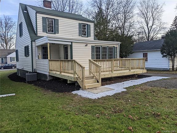 Welcome! This fully renovated three bedroom Cape Cod sits in a quiet neighborhood within the Hooker Avenue Boulevards subdivision of Poughkeepsie. Within walking distance to Vassar college and Arlington business district and in close proximity to Route 9 and major commuter highways, this home combines all the convenience of a central location with the privacy and ambiance the Hudson Valley has to offer. A brand-new kitchen features all new white cabinets, granite countertops, tiled backsplash, stainless steel appliances, and vinyl plank flooring. New tile line the bathroom floor and shower with modern plumbing and light fixtures. Hardwood floors shine throughout the first and second floors due to an abundance of natural light. The living room boasts a brick fireplace and a wood burning stove in addition to the natural gas that heats the entire home. New Central A/C has been installed as well. The basement contains a laundry room with a new washer and dryer. Enjoy the morning out on your brand-new deck overlooking a private backyard encompassing the Hudson Valley.