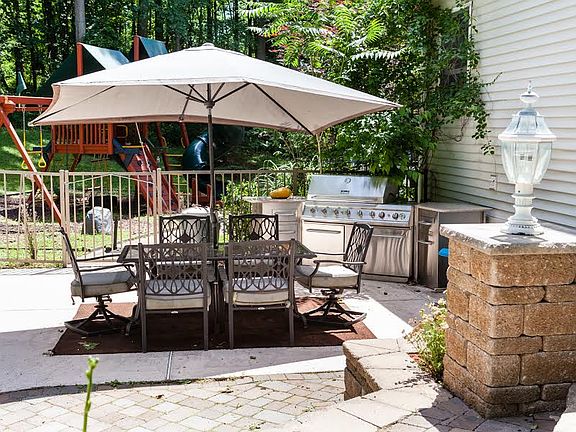 Stunning colonial completely refreshed in 2017. It's like walking into new construction! Updates include new siding, roof, heat and AC. Baths remodeled, refinished HW floors and freshly painted. Classic, open floor plan w two-story foyer and grand staircase. Abundance of natural light. Wood burning FP in family room, large kitchen w plenty of cabinetry, a center island and granite counters. Adjacent informal eating area has French doors to the backyard oasis. 2nd fl master suite w 2 walk-in closets, updated bath w double vanity, beautiful tile floors, stall shower and relaxing jetted tub. Another private, spacious room beyond master. 3 addt'l bdrms w large closets and updated bath w custom tile work. Finished basement is 20x44 w 1 2 bath. Extensive paver patio and pergola gunite pool w waterfall and spa.