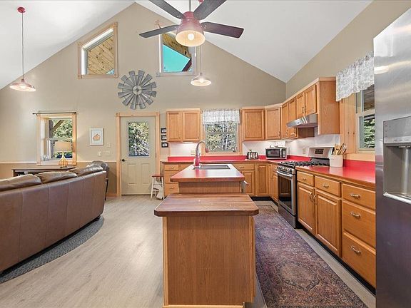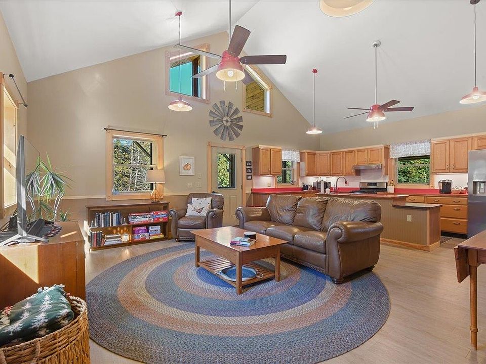 - Cathedral Ceiling(s), Ceiling Fan(s), Dining Area, Kitchen Island, Kitchen/Living, Natural Light, Natural Woodwork, Vaulted Ceiling(s)