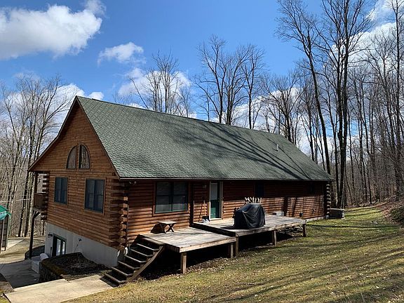 Beautiful custom log home on 8.39 all wooded acres, This 3996 sq. ft. home has been extremely well maintained and is updated with 2 new (2020) custom tile, walk in showers. Pull up and park on the large concrete apron stretching out to the garage and walk right into the huge finished basement area with it's own kitchen, dining area and bar. This lower level even has it's own bedroom, bath and laundry and would make a great in -laws quarters plus with in floor radiant heat you'll be toasty and warm. 1st floor has a large master bedroom plus en suite bath and large walk in closet. The kitchen/ dining area are all located off the giant sized living room with cathedral ceilings and the warmth of wood throughout, walk out the front door to a huge 10'x61' front porch. Also just off the kitchen is another laundry with powder bath. 2nd floor could be a 3rd bedroom or office with a view over the living room. Heat is radiant throughout, full standby generator, outdoor wood boiler.