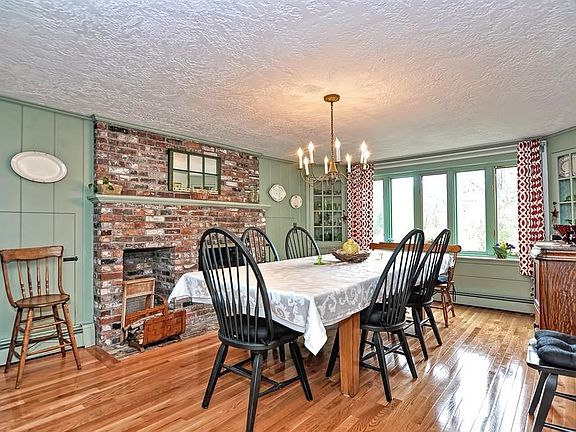 This quintessential expanded cape with 4 bedrooms, 3 baths blends the charm of yesteryear with modern living. Oversized dining room with fireplace, hardwoods and custom built in cabinetry-perfect for large family gatherings. The kitchen has an abundance of cabinetry, granite counters and ceramic floors. Gracious living room features hardwood, fireplace and built ins. Family room boasts hardwoods, fireplace with wood stove, built ins and has a view of the rear yard. Desirable spacious first floor master en suite with carpet, two good sized closets and recessed lighting. One more bedroom and a full bath complete the first level. Two additional bedrooms and a full bath are located on the second level. Lower level features 2 finished rooms- one with a fireplace and a slider leading to a patio. Magnificent lot featuring mature shrubs, inground pool, patio and shed. Desirable North Wayland location near the Claypit School and close to major commuting routes. LOCATION! LOCATION! LOCATION!!