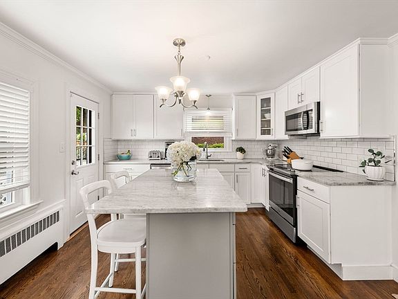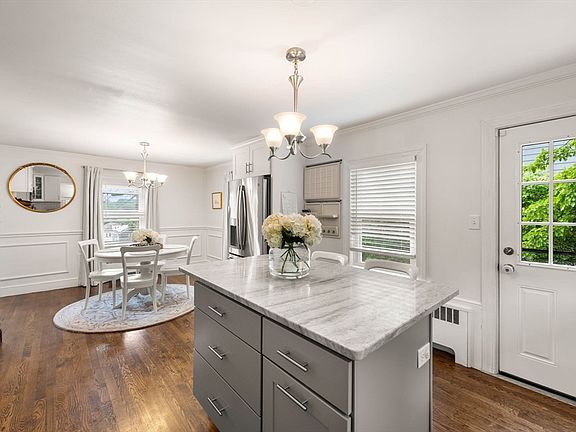 Boston’s Hidden Gem: A Cozy Cape Home in West Roxbury! Located in Boston’s West Roxbury neighborhood, this three-bedroom Cape home provides a suburban living experience in one of Boston’s greenest neighborhoods. The home comes with two floors of living space, as well as a finished basement with a laundry area. The first floor is highlighted by the stunning kitchen, equipped with gorgeous white cabinetry, subway tile backsplash, marble countertops, a sit-down kitchen island, and high-end stainless steel appliances. The first floor is completed by a dining room, living room with fireplace, a full bath and one bedroom. The second floor features two large bedrooms and a full bath. Enjoy the outdoors with a deck and patio that overlooks the backyard. Less than a half-mile to the commuter rail, and less than a mile to West Roxbury’s Centre Street, this home puts you within close proximity of grocery stores, restaurants, parks, and more.
