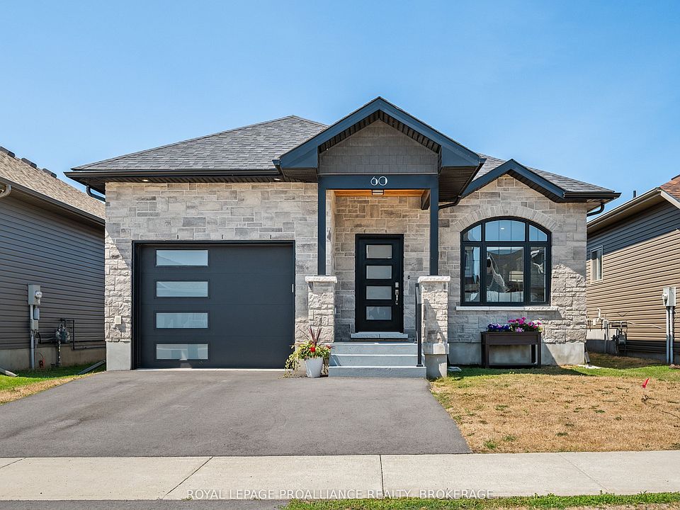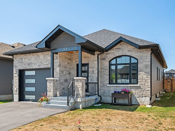Modern Luxury Meets Thoughtful Design. Welcome to the neighborhood of Babcock Mills in Odessa! Step into this impeccably designed modern home, where elevated finishes and attention to detail are evident at every turn. Outfitted with engineered hardwood flooring throughout, this residence features a stunning custom kitchen with quartz countertops, a dine-up island, and a pantry perfect for both everyday living and entertaining. The open-concept layout is both stylish and functional, offering three spacious bedrooms, two full bathrooms with porcelain tile and quartz vanities and a main floor laundry room. Outside, the fully upgraded exterior package delivers striking curb appeal with all-black windows and doors, a stone-accented façade, custom pillars, and a craftsman-style ceiling at the front entrance. Enjoy added privacy and outdoor living in the fully fenced backyard ready for family fun or peaceful retreat. Odessa is a 10 minute drive from Kingston on the 401. Babcock Mills is surrounded by three golf courses and within walking distance to Odessa Public and Ernestown High Schools. Odessa is a great place to live - only minutes away from any major shopping yet you have the small village atmosphere. This home is a rare blend of style, function, and comfort. A must-see for discerning buyers!