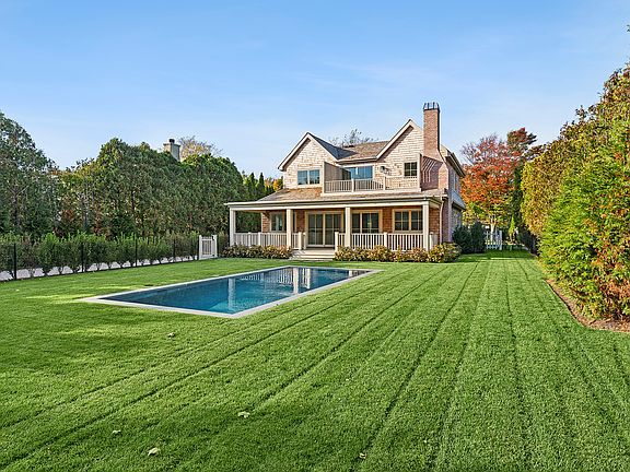 Located in the heart of Southampton Village, this brand-new construction, spanning approx. 4,055 sqft. across three levels features a seamless layout tailored for modern comfort and convenience. The home is set on .32-acres and boasts 6 bedrooms and 6.5 bathrooms. On the main floor, you'll find a spacious junior primary suite, open-plan living with new limestone mantle and fireplace, dining area, and a gourmet kitchen outfitted with premium stainless steel appliances and a central island. This level also includes a mudroom with pantry and a guest powder room. The second floor features a luxurious primary suite with a fireplace-accented sitting balcony that overlooks the backyard, as well as two additional en-suite bedrooms and laundry room. The lower level is equipped with an en-suite bedroom, additional bedroom, full bathroom, exercise room which includes Peloton tread, bike and weights, large media room, a second laundry room and ample storage space. Sonos throughout entire home. The beautifully manicured lawns feature a heated gunite pool, outdoor shower, and a detached two-car garage with EV car charger, outdoor speakers on covered patio, rock speakers around pool, interior speakers throughout. A favorite spot to unwind, the covered rear porch is ideal for relaxing mornings and evenings. Don't miss this amazing opportunity!