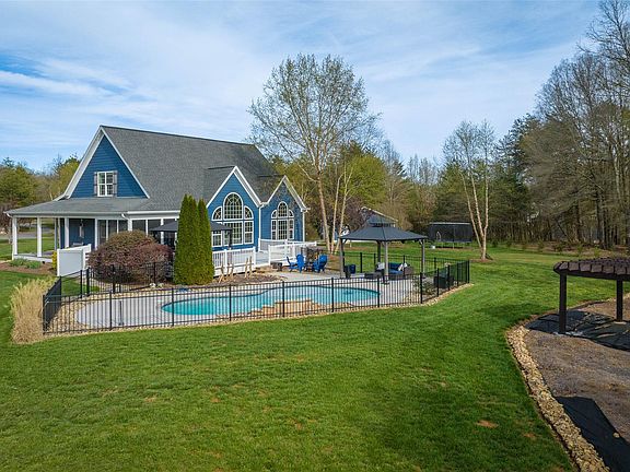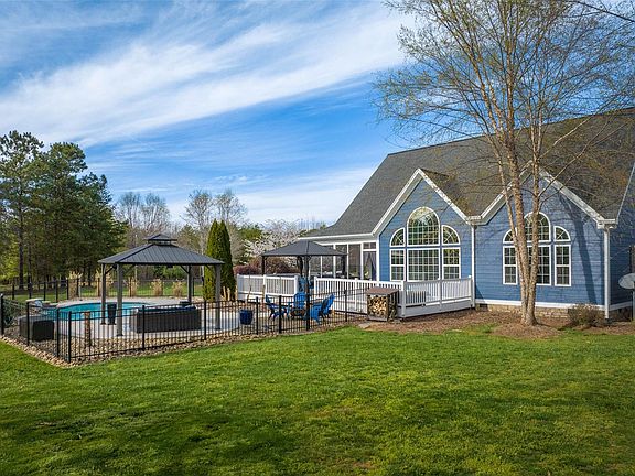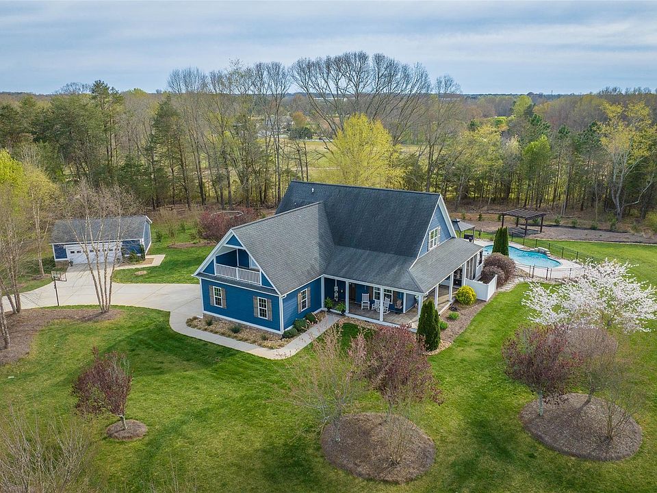 Unique and stylish home in Maiden area with private golf course access. This home sits on a beautiful, flat 1.50-acre lot w/ an outdoor oasis. Outside boasts a partial wrap-around porch, private balcony, lg. trex deck overlooking the gunite pool w/ fountain, 2 metal gazebos, fire pit area, & pergola for swings. Inside is just as beautiful w/ an open floor plan under cathedral ceiling, office w/ custom cabinets, open dining room, half bath, primary bedroom w/ en suite bathroom & high-end kitchen all on the main. The kitchen boasts new granite counters, a breakfast bar, custom cabinets & SS appliances. You will love the lg. primary bedroom w/ vaulted ceiling & luxury bath. This bathroom boasts a huge custom tiled walk-in shower, jacuzzi soaker tub, 2 granite vanities, to die for walk-in closet w/ laundry area. Upstairs find the 2nd full bath, 2 more beautiful & light bedrooms, and bonus/theater room with private outdoor balcony. Enjoy the 2-car attached and another 2-car detached garage!