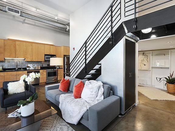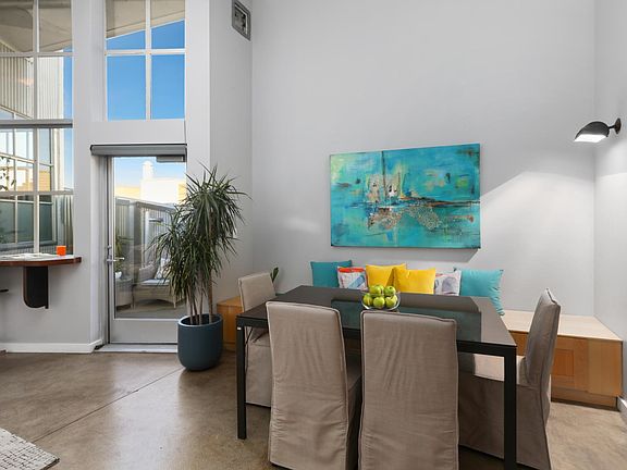 Welcome to a very unique two level corner 2BD/2BA live/work loft with a huge private patio and views of downtown right off the living room. This urban conversion loft with concrete finishes and tons of natural lighting in the historic Mullen Building offers a very cozy floor plan. Once you enter this corner unit, you are welcomed home with a short hallway that opens up to the kitchen/dining/living room area's huge windows. The living space extends onto the patio for indoor/outdoor living. A rare find, the patio offers privacy and partial downtown views, perfect for outdoor dining or wining and container gardening. Additional features are the conveniently built-in dining sitting area; a built-in desk area right by a large window facing the patio and views of downtown; built-in closet organizers in the second bedroom; a washer and dryer in the unit; concrete floors with radiant heating; a side entrance to the tree-lined street; and one-car parking in the building
