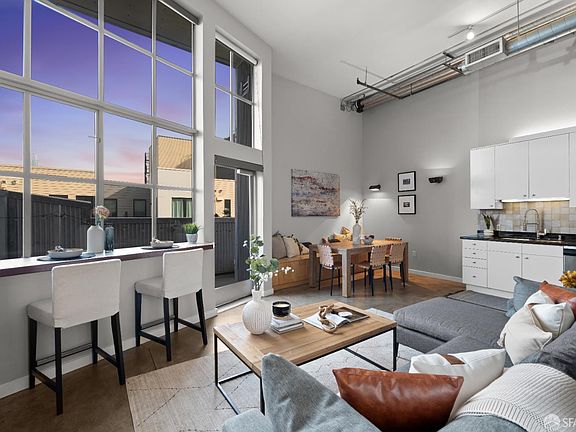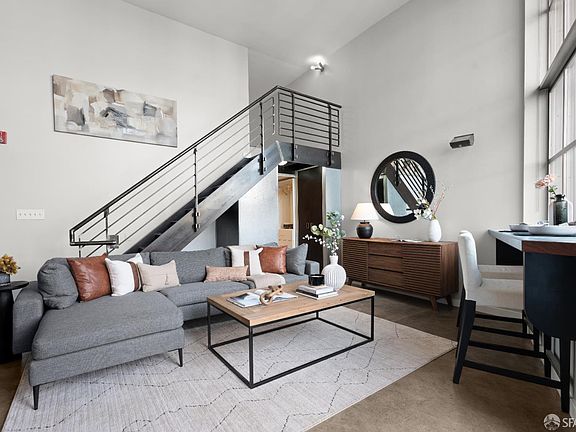 Welcome to the historic Mullen Building a true live/work loft in the heart of SoMa. This corner residence features a spacious private patio, 2 bedrooms, and 2 bathrooms, with a cozy living and dining area thoughtfully designed for comfort. A built-in two-person workstation faces the open sky, creating an ideal work-from-home environment. The expansive patio is perfect for relaxing or entertaining friends and family. Convenience continues with nearby elevator access to your dedicated 1-car parking space. Recent upgrades include luxury vinyl flooring in the bedroom, freshly painted cabinets, and updated interior paint throughout making this home move-in ready. Conveniently located near the Caltrain station and directly in front of the newly opened Central Subway line (Yerba Buena/Union Square/Chinatown Station), this home offers access to Chinatown and beyond. The neighborhood also includes several tech shuttle stops, along with grocery options such as Trader's joe's, Safeway, Whole Foods and Costco. Easy access to highways 280, 101, and 80 further enhances its prime location.