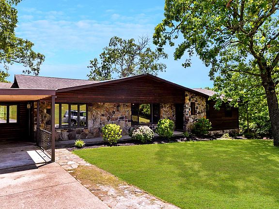 Welcome to Table Rock Lodge on Table Rock Lake! Lake front, Lake view & Dock Zoning! Located on 2 peaceful acres, this completely remodeled log sided 4 bedroom, 3 bath home is the perfect lake retreat! Walk right to the water in less than 30 seconds to your boat slip for a day of fun on the lake! Enjoy the large deck for entertaining & relaxing enjoying the wildlife or sit around the fire pit at night roasting marshmallows. The home features a cozy living room, great room, 2 dining areas, spacious family room, kitchen with granite counters & bar, wood floors, 1 car carport & 24 x 24 detached garage/outbuilding & so much more! Approved for vacation rentals, this is the perfect get-away spot!