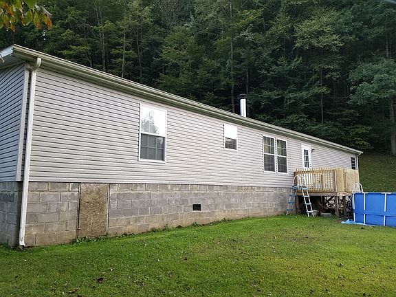 Clayton mobile home 28×68 built in 2006. Not your average mobile home...lots of upgrades including zone 3 insulation. Home sits on approximately 1/4 acre of flat land. The remaining property is hilly and mountainous. Surrounded by a peaceful flowing creek on three sides, giving the feel of being on its own island. Property also has a 16X20 storage building with atic and front porch.