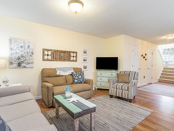Furnished!!! Cozy and convenient, this 2 bedroom, 2.5 bath townhome will make it easy to get settled into the Lowcountry Coastal lifestyle. Enjoy close walking proximity to great local restaurants and shops unique only to Pawleys Island. The beach is only a 3 minute drive away. Two story townhouse boasts ceiling fans, new upgraded LVP flooring upstairs and downstairs, upgraded shower, enclosed back porch, gutters, private single car garage. AND MORE! Two spacious master suites with vaulted ceilings on second level. Home backs up to wooded buffer on quiet cul-de-sac. Community amenities include pool HOA covers water & sewer, trash removal, exterior building insurance, common area maintenance and management, pool upkeep, and pest control. Call TODAY for more information or to schedule a showing!