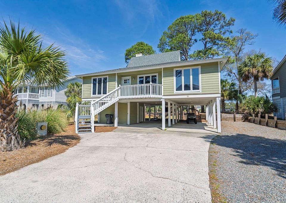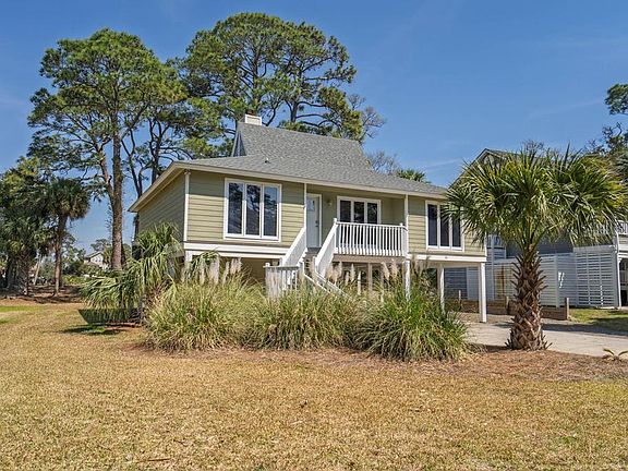Attractive Edisto Beach Home with beautiful views of the Plantation Golf Course. This updated 3BR/2BA home is located in a gated Ocean Ridge with easy access to the Beach via the back Owners Gate. . The Great room is spacious with bamboo floors, tray ceiling with lighting and wet bar. The kitchen is adjacent with Stainless appliances, The Screened Porch is a wonderful place for cocktails and entertaining. Two sundecks complete the outdoor space. The primary suite has a dressing area and walk in closet adjoining the updated bathroom. Two guest bedrooms and another updated bathroom complete the floor plan. The home is elevated so you can entertain underneath and enjoy the breezes and golf course views. Also a large storage room for all your beach accessories. There is plenty of parking too