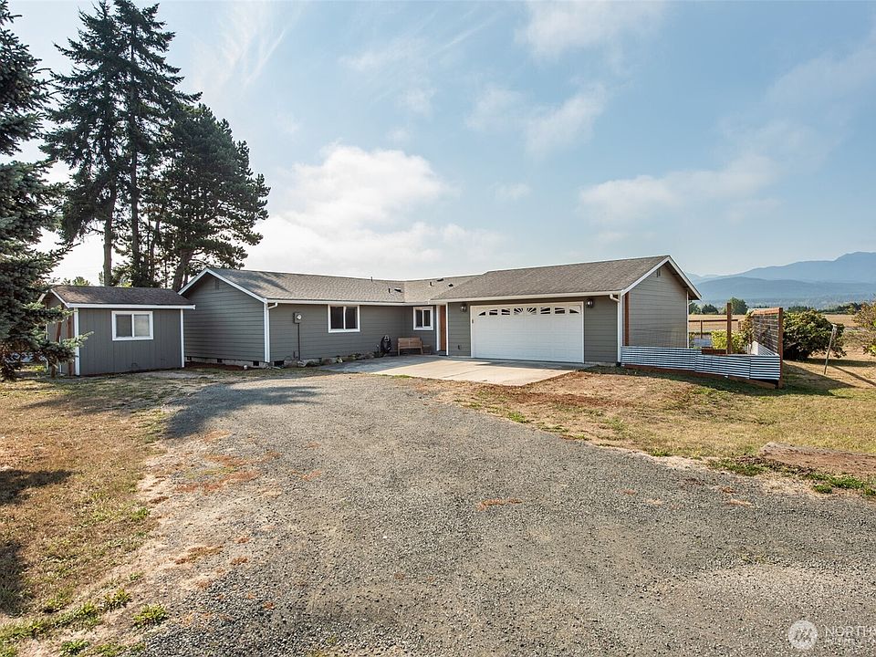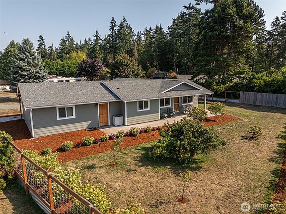 With a jaw-dropping Olympic Mountain VIEWS, this tidy single-level home is truly move-in ready! Featuring 1,344 SF of view-focused living space with 3 bedrooms, 1 full bath, an attached 576 SF 2-car garage, and 12x12 storage shed—all tucked into a quiet cul-de-sac. Extensive remodel in 2007 and recently freshly painted interior, carpets cleaned, new dishwasher, & bath flooring. The fenced yard offers garden space, blooms, and an extended south-facing patio perfect for soaking in the famous Sequim sunshine. No HOA! Recreation nearby: Dungeness Spit & wildlife refuge, Cedars at Dungeness golf & restaurant, Sky Ridge golf, Cline Spit PLUS convenient to the amenities of both Sequim & Pt Angeles... And did we mention the view?