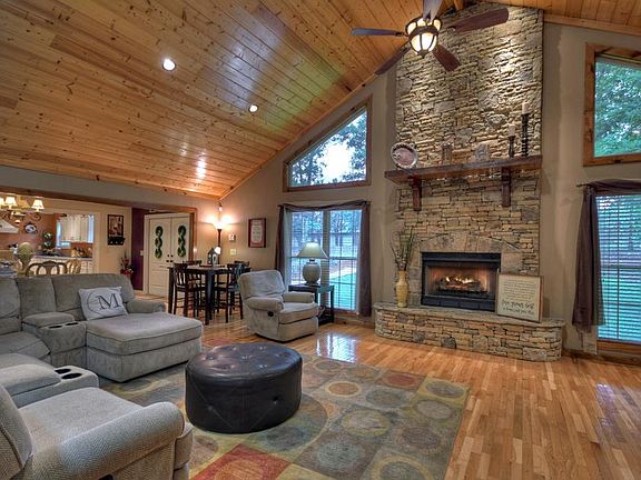 A Tradition of Elegance...This 3-4 BR/3 BA on gentle 4.5 tract is centrally located on paved road w/ easy accessMain floor interior offers open & well appointed layout w/ stone FP in large family room; formal DR off foyer. Chef's KIT w/ upscale appliances & cust. cabinetry; laundry/mudroom; walk-in pantry; 2+ car GAR. Master-en-suite w/shower & air jet tub, 2 walk-in closets. Spacious guest rooms w/ full baths. Finished terrace level boasts family/rec room & guest quarters along w/ x-tra storage. Bonus room overlooks living area perfect for add'l BR, office, playroom, exercise room. Large cov. porch & level landscaped yard; circle driveway & large parking areaTucked away, yet just minutes from downtown Blue Ridge & Blairsville, lake, river & more! Close to medical facilities, school, & new college location. Perfect commercial potential w/ room for more housing, duplexes, etc!