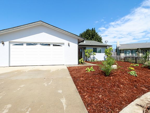 Wonderful single level home on the Central Coast! Call or text 805-712-2258 or email ValerieG@MerrillRE.com. This clean, move in ready 3 bedroom, 2 bath home is located in the town of Grover Beach just a few minutes drive from the ocean. It has an extremely functional layout and tasteful laminate wood flooring throughout the open concept living space. The master has an en suite and two closets. The garage is finished and clean. Kitchen has been modernized and the exterior has brand new paint. The house has a water softener and alarm system. It is on a quite cul-de-sac with well appointed landscaping in the front yard and very large rear yard. It's convenient location puts you a couple of blocks from a park and walking distance to restaurants and markets. It also provides for easy access to the 101. CA BRE# 01895248