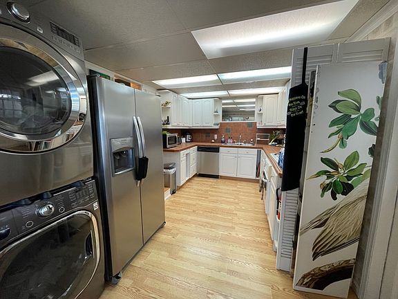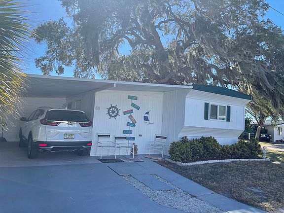 60 Riverview Drive, Ellenton, FL 34222 Pelican Pier 55+ MH & RV Community This home is on a rented/leased lot. This 3BR/2.5BA mobile home is ready for year round or seasonal living on the Manatee River! It is located on a desirable waterfront lot at the end of the street at the back of the community for privacy. Just bring your toothbrush; this one comes furnished/turnkey! The original 10 x 46 single wide has been remodeled into 3BR/2.5BA. The 20 x 30 add-on houses the kitchen and living area. There is over 1,000SF for living, dining and entertaining! The 2018 A/C keeps it cool! The galley kitchen has tile flooring, custom cabinets, ample storage and upgraded stainless appliances. There are hookups for the stackable washer/dryer (included in the sale) conveniently located inside at one end of the kitchen. The adjoining living room has carpet, sheetrock walls and a slider to the outdoor waterfront patio. There are sweeping views of the Manatee River. Bedroom one has carpet, panel walls and an exit to your own outdoor waterfront deck. The main bath has laminate, upgrades and a walk in shower. Bedroom two has carpet, a closet and a master bath en suite. The bathroom has a Bedroom three has carpet and a 1/2 bath en suite. The carport can park 2 cars tandem style. There are several tuff sheds. The lot rent is $647 and includes water, sewer, trash, lawn cutting, edging, blowing, a clubhouse, access to the Manatee River and a calendar of activities. The final actual lot rent TBD by Pelican Pier management. Pelican Pier Mobile Home Park is a pet friendly 55+ community on the Manatee River. It is located just off I-75 near the Ellenton Outlets, shopping and other services. Florida MH Sales, LLC cannot guarantee or warrant the accuracy of this information, measurements or condition of any property. Measurements are approximate. Lot rent is subject to change