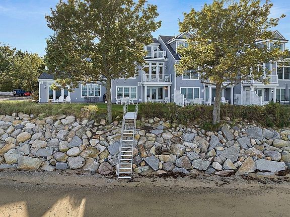 DIRECT WATERFRONT: Custom designed three level townhouse with private outdoor space on every level! The main floor has 1000 sq feet of open entertaining space with 9 ft high ceilings. You'll enjoy an elegant dining room, a designer red birch chef's kitchen with high-end stainless appliances, and a living room with three sided gas fireplace. Step onto the deck just off the kitchen with your morning coffee! The upper level primary suite, with an oceanside balcony, has a large walk in closet plus a top of the line spa-like bathroom with jacuzzi tub that fills from the ceiling and a steam shower. Finally, the walk-out lower level has a guest bedroom, full bath, laundry and a cozy den with a gas fireplace - plus sliders onto your oversized private patio. One car attached/heated garage, new AC unit, radiant floor heat and too many upgrades to list. Robbin's Wharf has a gorgeous private sandy beach for you to enjoy and is surrounded by 18 acres of conservation. Private showings begin 4/10.