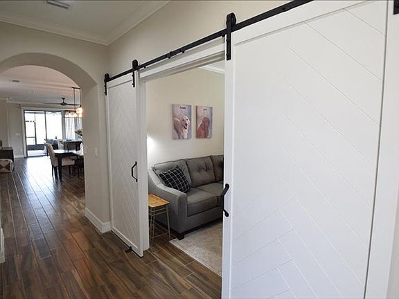 Looking for your forever home? Perfection is here! Superior prime lot location to include expansive views of the lake. 2 brs with an additional flex room that could be office or bedroom (double custom made barn doors). Open floor plan with Calif Island, upgraded gas stove, stainless appliances, deep stainless steel sink. Owners suite features step tray ceiling with inset lighting. Luxury bath with granite countertops, comfort height sinks. Walk in shower with glass doors. Enjoy Florida weather on the extended screened lanai with tongue in groove wood ceiling and canned lights, outdoor window treatments. Laundry rm has extra cabinets and counter space. Builtin storage cubbies, and cabinets. Crown molding. 5 inch baseboards. Pelican full house water system. Awesome amenity center and pool. Home owners enjoy 2 amenity centers.