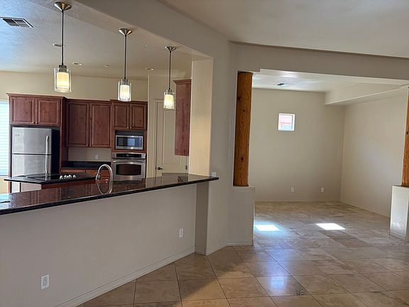 THIS SINGLE LEVEL END UNIT HOME FEATURES AN OPEN FLOOR PLAN, TRAVERTINE FLOORING IN MAIN LIVING AREAS, CARPET IN BEDROOMS. LIVING ROOM WITH GAS FIREPLACE, DINING ROOM, KITCHEN WITH PLENTY OF CABINETS, BREAKFAST BAR, ISLAND AND EAT IN AREA. MASTER WITH TWO SINKS , LARGE SOAKING TUB AND SEPARATE SHOWER. SPLIT FLOOR PLAN WITH TWO ADDITIONAL BEDROOMS, SECOND FULL BATH, LAUNDRY ROOM, PATIO AND TWO GARAGE. COMMUNITY POOL AND LANDSCAPE MAINTENANCE INCLUDED. SORRY, NO PETS. PLEASE CALL TO SCHEDULE AN AGENT SHOWING.