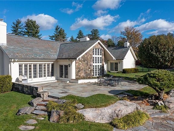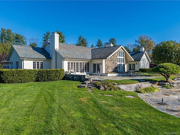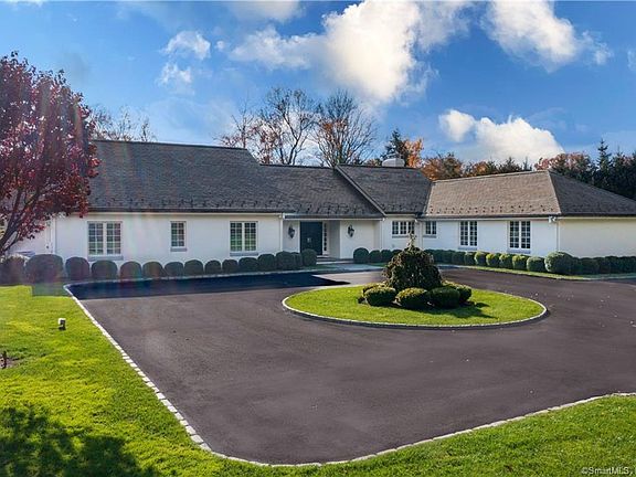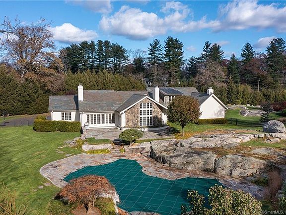 Superbly situated on 2+ acres in one of the most sought after locations in central Greenwich. Set back over 300' from Round Hill Road, this light filled elegant home is sited in the perfect spot - providing privacy, with large front and rear yards, expertly landscaped and well maintained. Entry foyer leads to a dramatic double height great room with fireplace overlooking the rear yard and pool. French doors open to large patio in both great room and family room. Kitchen / Family room with fireplace lead to a den/office, ample closets with full bathroom and private exterior access. Generous 1st floor master footprint with ensuite bath, 2 walk-in closets, fireplace and access to rear yard through french doors. Den /office space in master suite with fireplace. 2 further bedrooms, full bath and powder room on this floor. Second floor features 2 more bedrooms, ample closets and full bath. Free form gunite pool with recent heater upgrade. Partially finished basement currently used as gym, and large storage areas. 3 car garage with EV car outlet and generator.