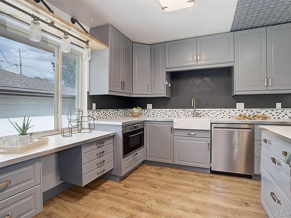 Welcome to this charming 5-bedroom home with an entrance gate to the detached 2 car garage and secluded backyard. Nestled in a welcoming community, this delightful residence combines comfort with convenience. Upon entering, you'll be greeted by a spacious living room that flows seamlessly into the dining area, making it a perfect spot for gatherings. The adjacent kitchen is is sure to impress as it is well-equipped with ample storage, a built in desk and modern appliances, ready for your culinary adventures. Each of the five bedrooms offers comfortable living spaces with natural light, ensuring personal comfort and privacy. The two bathrooms are neatly maintained and updated. Other main level features are hardwood flooring and new paint in the family and dining rooms, as well as in the three bedrooms. Additionally, there is a versatile flex space that can serve as an office, workout area, mudroom, etc., located off the kitchen with its own separate exterior entrance. The finished basement features a family room, two bedrooms with new carpet, a three-quarter bath with a shower, and a laundry room with plenty of storage space. Step through your private gate into the spacious, fully-fenced backyard featuring a concrete patio. The detached two-car garage, an expansive 735 sq ft with a workshop, is conveniently situated with its own exterior entrance. The home's front boasts a large deck complete with a ramp. A new roof was installed in 2024. Additional exterior amenities include an oversized driveway, perfect for an RV, boat, or extra vehicles. A perfect location close to Belmar, shopping, Lakewood's great parks. Easy access to downtown or the mountains. It's more than just a house; it's a place you can truly call home. Don't miss out on the opportunity to own this lovely Lakewood home.