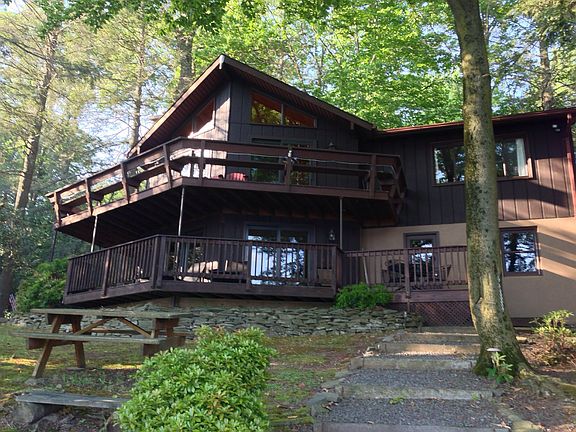 Beautiful lake front home with updated kitchen, baths and living areas. Level lot, 2 stone fireplaces, large windows to lake wood floors. 2 decks facing the lake. the 350 protected acres surround houses in this quiet neighborhood. This lake front has it all.