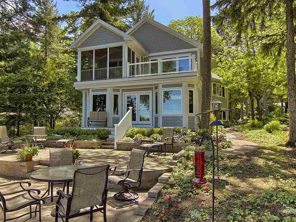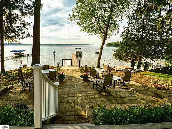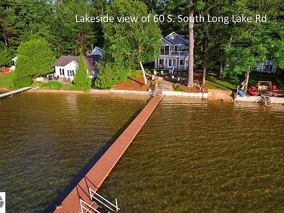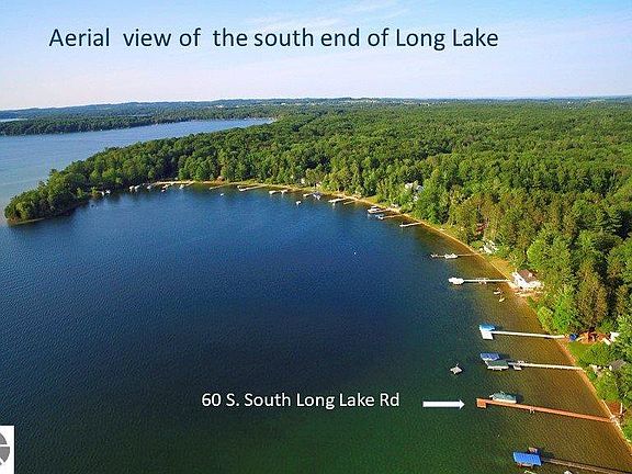 This contemporary craftsman home with stunning Long Lake views, sunsets & superb sandy beach was built in 2011. Features include expansive living room with gas fireplace & custom cherry surround, gourmet kitchen with gas stove, stainless appliances, wine fridge, custom cupboards & extra large walk-in pantry. Stunning master suite with stellar water views has a large sitting area, three seasons room, private deck, luxury bath with radiant floor heat; the 7.5' x 19' walk-in closet is a site to see. Upper level family room currently used as recreation/family room; its 20 x 24 size has vast potential as a second bedroom suite, exercise room or home theater. Large laundry and mudroom lead to fenced dog run & attached garage with epoxy flooring & laundry tub with hot & cold water. Home has 2x6 construction, Energy Star appliances, two 95% eff. furnace w/ 3 zones & central air, humidifier and de-humidifier, plus cement board siding; gas lines in place for a garage heating system and gas grill. Tile floors in all bathrooms, rheostats, bamboo flooring in living room, kitchen and dining room. Easy entertaining with lakeside trex style synthetic deck and terraced patio with custom pavers & lighting; landscaping includes perennials, flowering shrubs, ground covers, raised vegetable beds and underground dog fence. Detached two car garage sports the 20 x 22' bonus room on the upper level with its own entrance--perfect artist studio, shop or "get-away". Ten minutes to TC & Interlochen Arts Academy; 1/2 hr. to Crystal Mt. for skiing, golf, & spa. All measurements are approximate; to be verified by buyer.