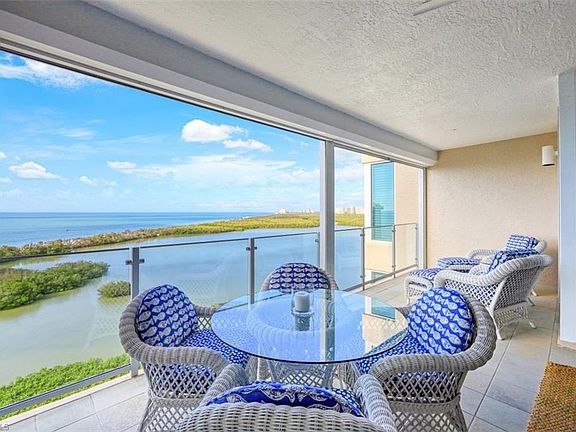 C7969 LUXURY BEACHFRONT CONDO ~ 3 BDRM/3 BATH stylishly updated condo in Baypointe at Naples Cay. This 12TH FLOOR CONDO offers spectacular views of the Gulf, Clam Bay & Venetian Bay. Just steps to the sand! NINE FOOT CEILINGS, NEW A/C Jan. 2023, NEW state of the art tv w/Sonos wifi sound bar in the living room, GE Monogram kitchen appliances, two dishwashers: Fisher & Paykel & GE. SubZero wine cooler. Freshly painted throughout. Two large lanai’s totaling nearly 600 SF ~ the west facing lanai offers Gulf and Clam Bay views, perfect for watching sunsets. The east lanai offers Venetian Bay and city views, perfect for watching sunrises. Baypointe is an amenity rich building renovated in 2018 ~ 3 guest suites, large sunset deck, social room with caterer's kitchen, state of the art fitness room, owner's lobbies with just 3 units per floor, kayak ramp and more. PET FRIENDLY building allows TWO PETS. Nestled between Park Shore and Pelican Bay, Naples Cay is a private, guard gated, beachfront community that offers a unique level of privacy and tranquility, yet is within walking distance to fine dining, shopping & entertainment of Venetian Village, Waterside Shops, and Artis-Naples.