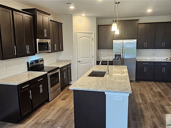 Savannah's most trusted local builder is proud to offer our Pinehurst II plan. This home has some excellent features and upgrades including an upgraded front look "Elevation LE", covered back porch with concrete patio extension, separate tile shower and separate garden tub with tile surround in primary bathroom, garage door opener with 2 remotes, pendant lights above kitchen island, large single kitchen sink, click plank wood look flooring in main living area and wet areas, 42" cabinet uppers in kitchen, upgraded cabinets, granite tops in Kitchen, quartz tops in full bathrooms, tray ceiling in primary bedroom and wood treads on stairs. Home is finished and ready now. Pictures, features, and selections shown are for illustration purposes and may vary from the home built. All builder incentives applied.
