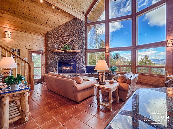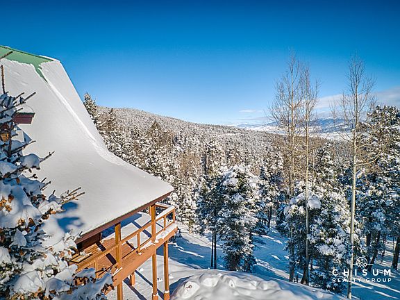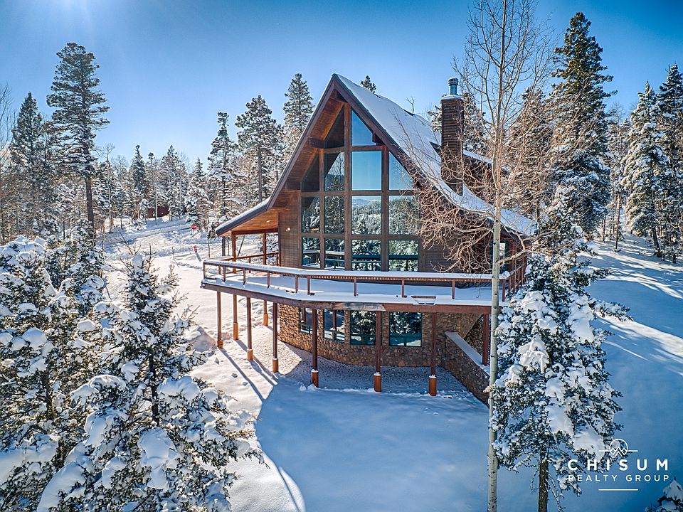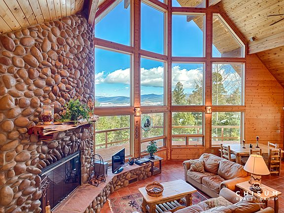 Welcome to your new mountain home - you couldn't pick a nicer property! Located on the west side of Moreno Valley, high enough up the mountain for a very private feel yet only a short drive down to the village center and all the adventure Angel Fire has to offer. This home is perfectly perched on a wooded 2.57 acre lot that provides amazing views of our high alpine valley, Baldy Mountain, Touch-Me-Not Mountain, and Eagle Nest Lake! These expansive views can be enjoyed from almost every room in the house as well as the large wrap around deck. Inside, you'll find a well-maintained home with a stunning great room featuring a two story window wall, saltillo tile flooring, tongue and groove wood ceilings and a gas fireplace surrounded by river rock and flanked by a flagstone hearth. The kitchen is upgraded with granite countertops, stainless steel appliances, dual ovens and a breakfast bar with more of the rustic river rock. The master bedroom is located the main floor with a large ensuite bath featuring a walk-in closet and a large custom shower with glass blocks. Upstairs contains a loft with an office area, a full bathroom and two guest bedrooms with one of the bedrooms featuring a unique loft / hideout that your kids, or grandkids, will be sure to love. Downstairs features another living area, a bonus room and a home theatre with custom built-ins. This home comes fully furnished and is move in ready.