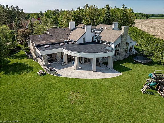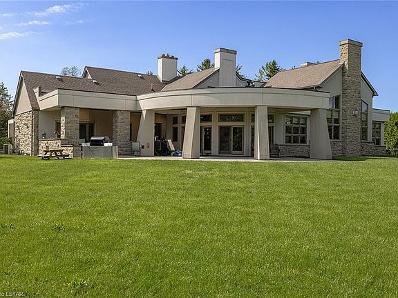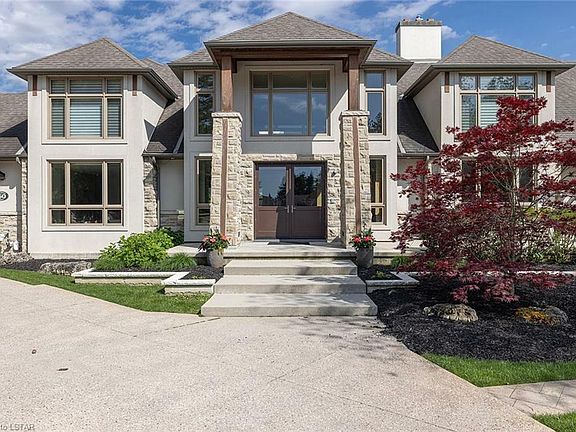 Welcome to the crown jewel in St. John's Estates! Step into over 10,000 total square ft of exciting architecture on a premium 2.08 acre lot! Impressive floor plan features foyer/gallery showcasing exotic wood art niches & ceiling detail! Spectacular great room presents impressive living room anchored by floor to ceiling granite fireplace, 15 foot live edge Bubinga dining room table, bar & billiards featuring Zebra wood detailing & cherry/maple built-ins. Professional grade luxury gourmet kitchen. Main floor master suite with oversized dressing room, double walk-in closets, dual fireplaces, access to front courtyard & back wrap-around covered concrete patio with cedar tongue & groove ceiling overlooking lush grounds and serene woodlands. State of the art gym. Four spacious second floor bedrooms with sitting areas, ensuites and built ins. 2nd floor media room with electric black out blinds. Rich Tiger wood flooring. Wirsbro in-floor heating system. Triple car garage with dual 12 ft entry doors & large rear garage door to access sizable concrete pad for additional outdoor activities. Just a few minutes drive to great restaurants, Masonville Mall shopping, Western University and University Hospital.